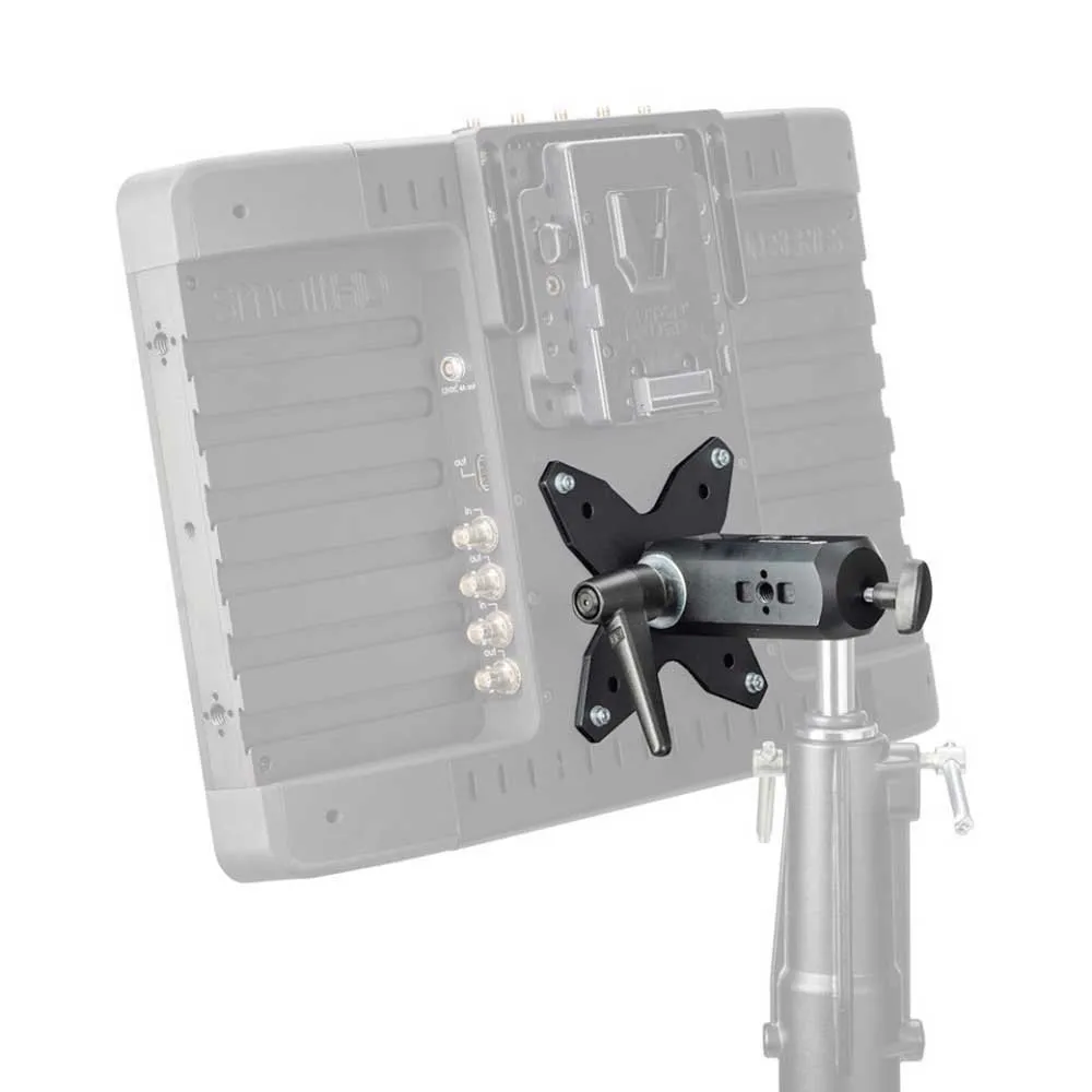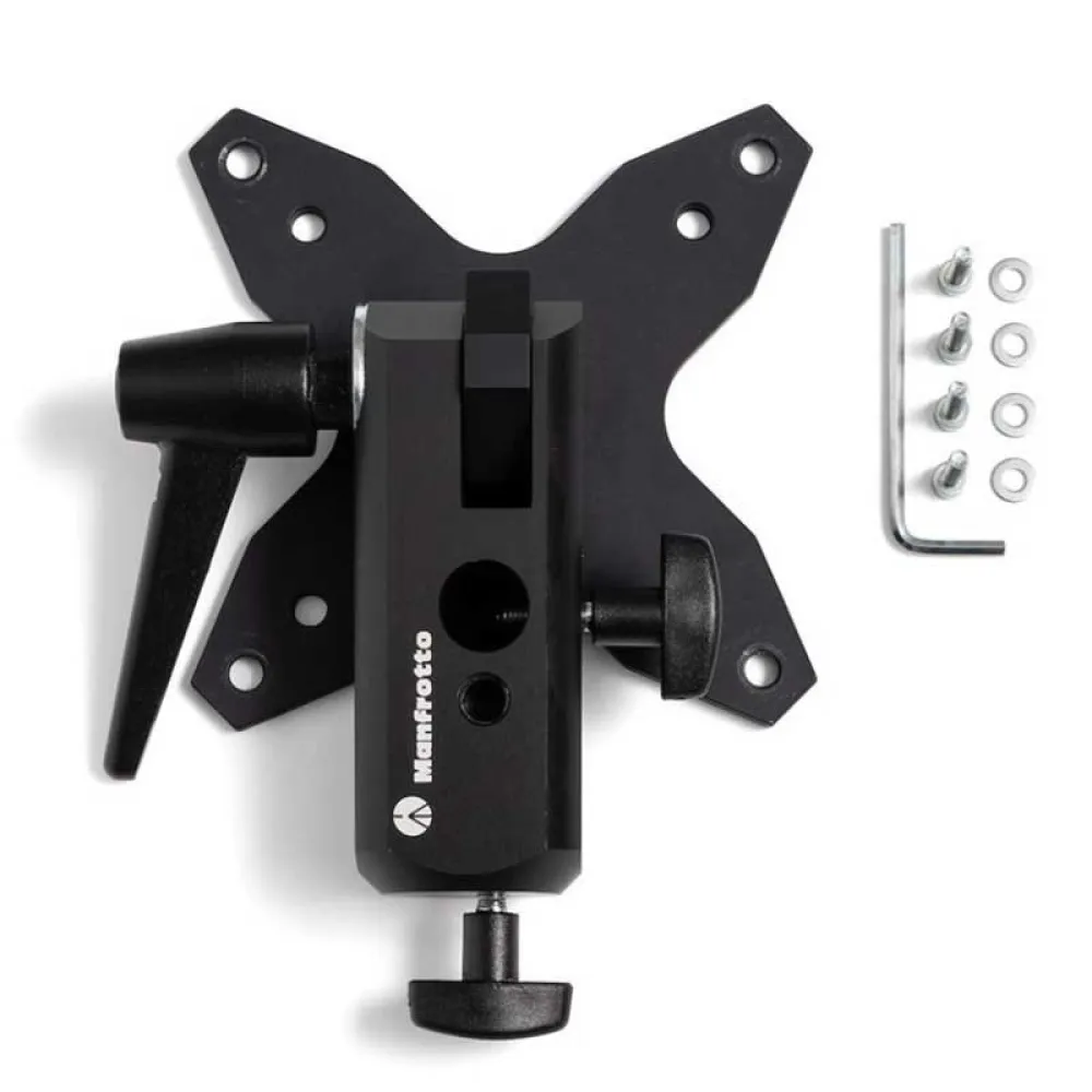 Tethergear Vesa-skjermfestet er den ideelle tilkoblingsløsningen for bildeskapere og innholdsskapere, og gir kompatibilitet med industristandarden 75 Mm X 75 Mm og 100 Mm X 100 Mm Vesa-konfigurasjon og kan støtte en skjerm som veier opptil 30 kg (66,13 lbs) , Den gir et sikkert vedlegg ideelt for eksterne videoskjermer, PC-skjermer og TV-skjermer. Når det er sikkert festet til den valgte skjermen, kan festet festes til en hvilken som helst egnet støtte som et lysstativ, friksjonsarm eller veggplate via den 16 mm (5/8”) hunnkontakten og sikres med T-knotten i begge landskapet Eller Portrettorientering. Vertikal tilt kan justeres ved hjelp av skrallehåndtaket med høyt dreiemoment, slik at brukeren kan foreta mindre justeringer etter behov trygt og sikkert. Vesa-festet har flere tilbehørsfestepunkter som er integrert i designet, for eksempel et 3/8" gjenget hull med Manfrotto og anti-rotasjonskroker i Arri-stil, et sekundært 3/8" gjenget hull for ytterligere tilbehør og ytterligere 16 mm (5/ 8”) Hunnkontakt, som tillater bruk med essensielt tilbehør som friksjonsarmer og små belysningsstøttetilbehør for montering av trådløse mottakere, blits- eller led-belysning, lydenheter eller kompaktkameraoppsett.Manfrotto Tethergear er en samling av tilkoblet skytetilbehør designet og laget for den profesjonelle innholdsskaperen, nødvendig tilbehør som kreves for å sette opp en tilkoblet arbeidsstasjon eller videolandsby ved hjelp av skjermer, bærbare datamaskiner eller nettbrett.