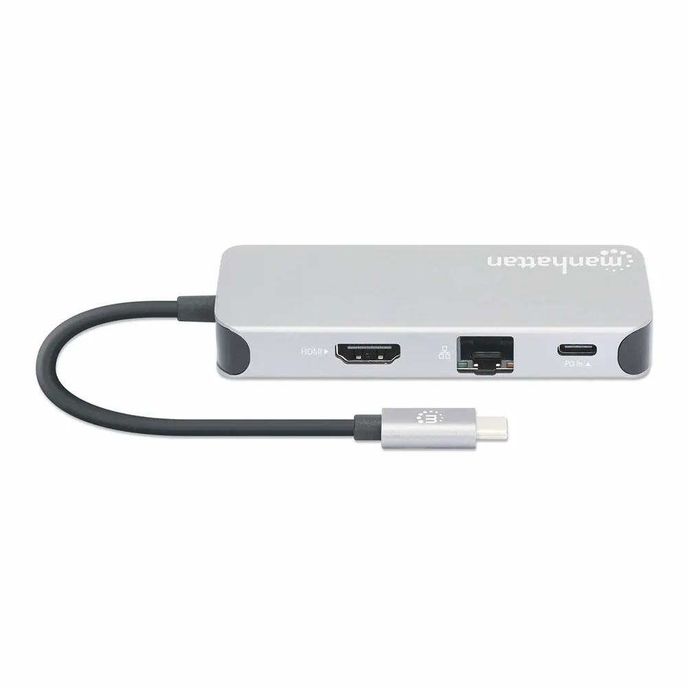 Manhattan dokkingstasjon for 8-i-1 USB-C-tilkobling med strømforsyning.