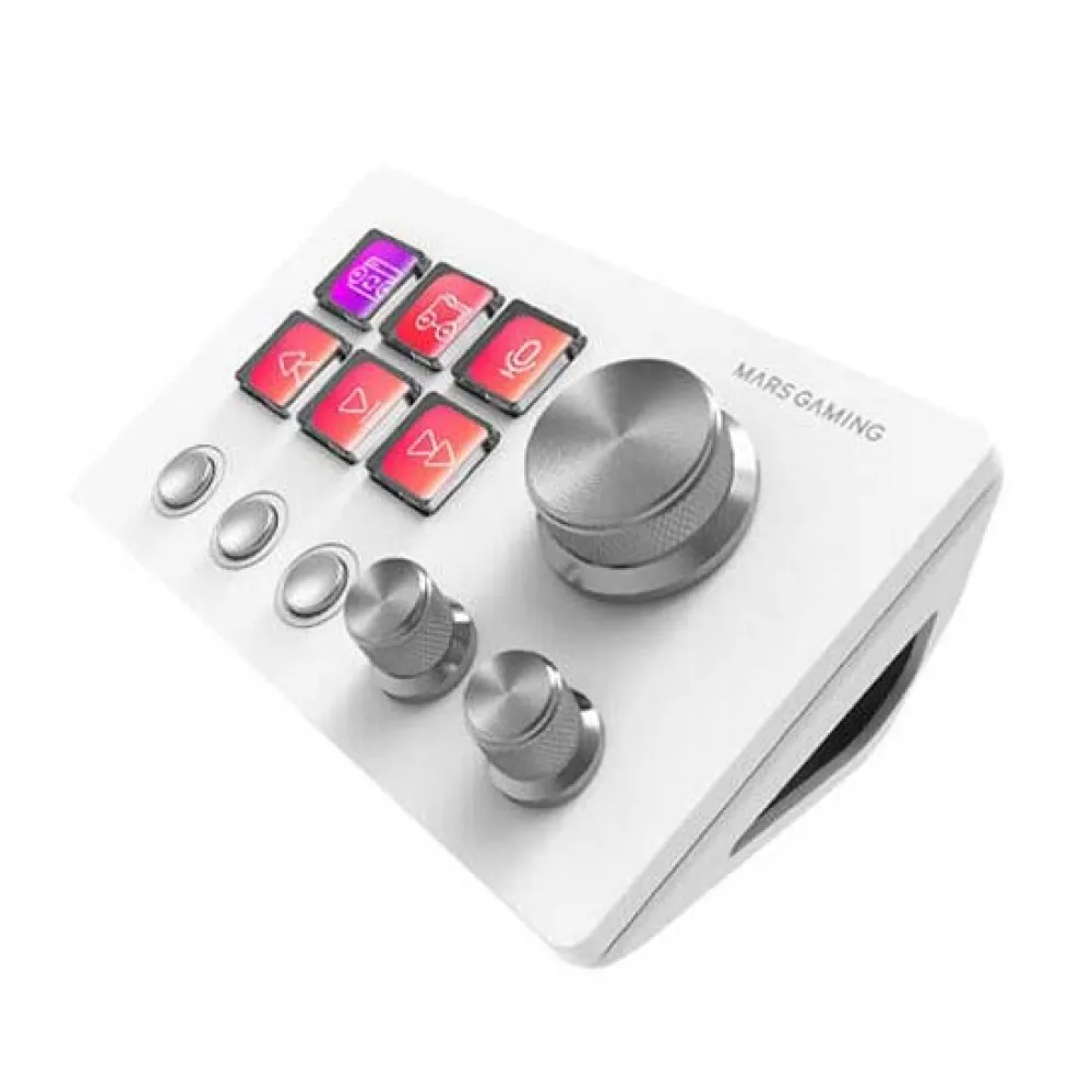 Utstyrt med 3 multifunksjonshjul, 3 dedikerte knapper for å administrere scener og 6 tilpassbare LCD-taster, lar den deg justere innstillinger, lage snarveier og administrere multimedia med total presisjon.