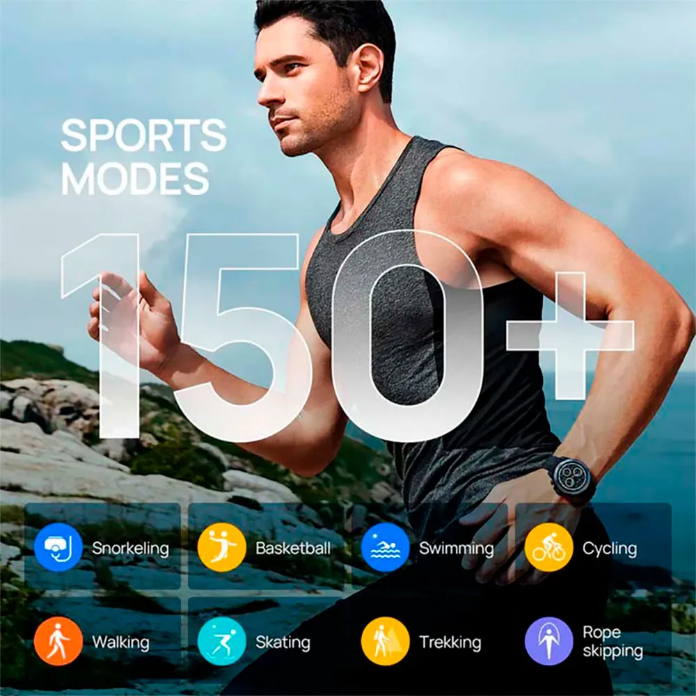 Fokusert på å motivere deg under treningsøktene dine, tilbyr Mibro GS Explorer smartklokke mer enn 150 sportsmoduser designet for å tilpasse seg enhver disiplin, fra de mest vanlige til de mest spesialiserte.