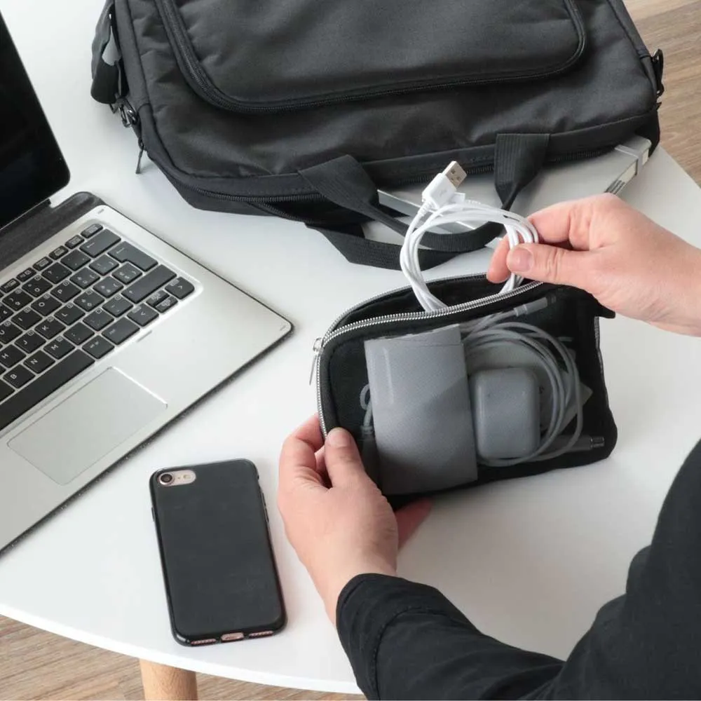 Denne praktiske og smarte vesken hjelper deg med å organisere små tilbehør og unngå at du mister den eller bryter den i bunnen av vesken. Kabler, hodetelefoner, pekepenn, organiser ditt teknologiske tilbehør og finn det enkelt.