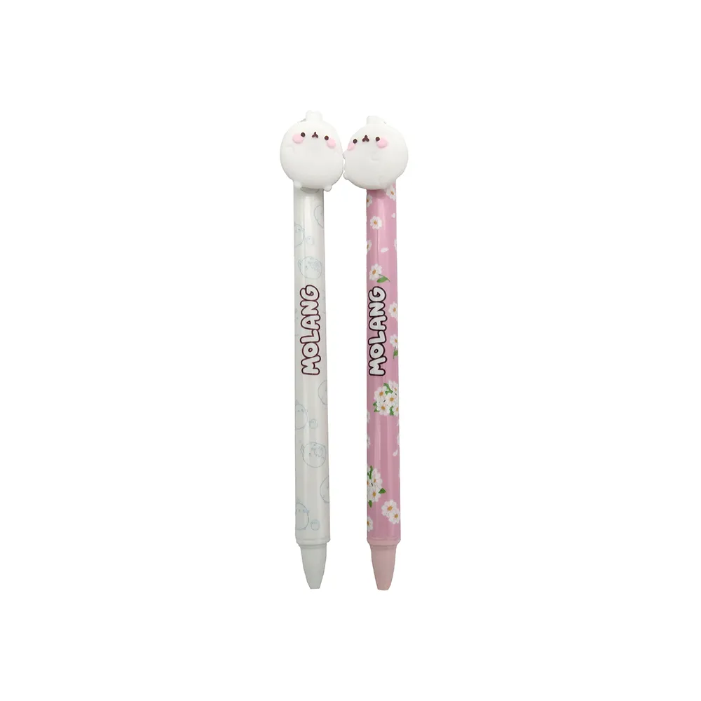 Denne pennen er ikke bare et praktisk verktøy; det er et herlig tilbehør som vil lyse opp ethvert penalhus eller skrivebord. "Blomst"-designet har den uimotståelig søte Molang og dens beste venn Piu Piu, satt mot en vakker bakgrunn av delikate rosa kirsebærblomster. Den fanger den gledelige og milde ånden til den elskede karakteren, og gjør hver skriveoppgave til en hyggeligere opplevelse. Det jevne blekket sikrer en komfortabel og jevn skriveflyt, perfekt for alt fra journalføring og tegning til fullføring av viktige oppgaver. Det er et must for fans av Molang, søte skrivesaker og elskere av den "andre anime"-estetikken.