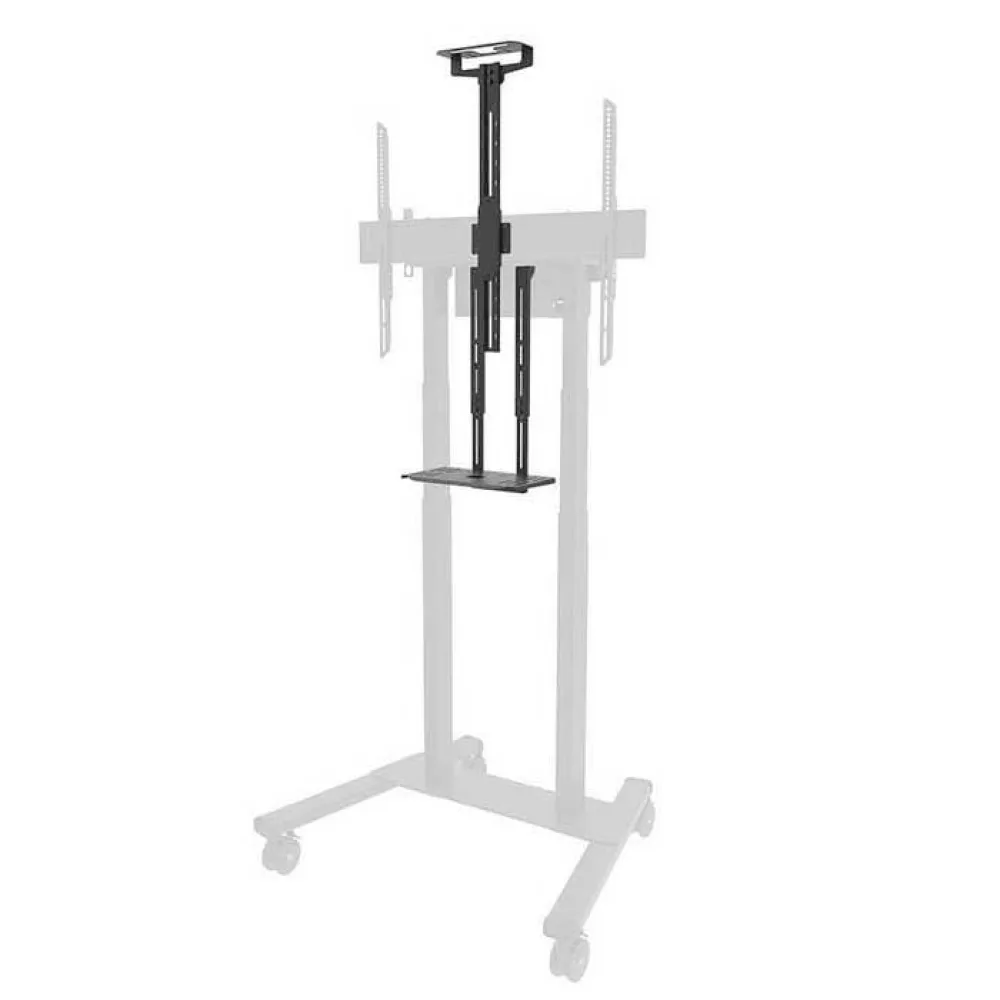 Neomounts AV1-875BL1 er et videobar- og multimediasett som er valgfritt for FL55-875BL1 mobil gulvstativ og WL55-875BL1 veggmontering. Settet gjør det mulig å installere en egen kamerahylle og multimediaenhetshylle på vognen. Den universelle kamerahyllen kan installeres både over og under skjermen og er justerbar i høyden for å passe til skjermen. I tillegg kan kamerahyllen monteres både på forsiden og baksiden av rammen. I settet er det inkludert en adapter for Bose VB1 og VB-S (som også kan plasseres både over og under skjermen).