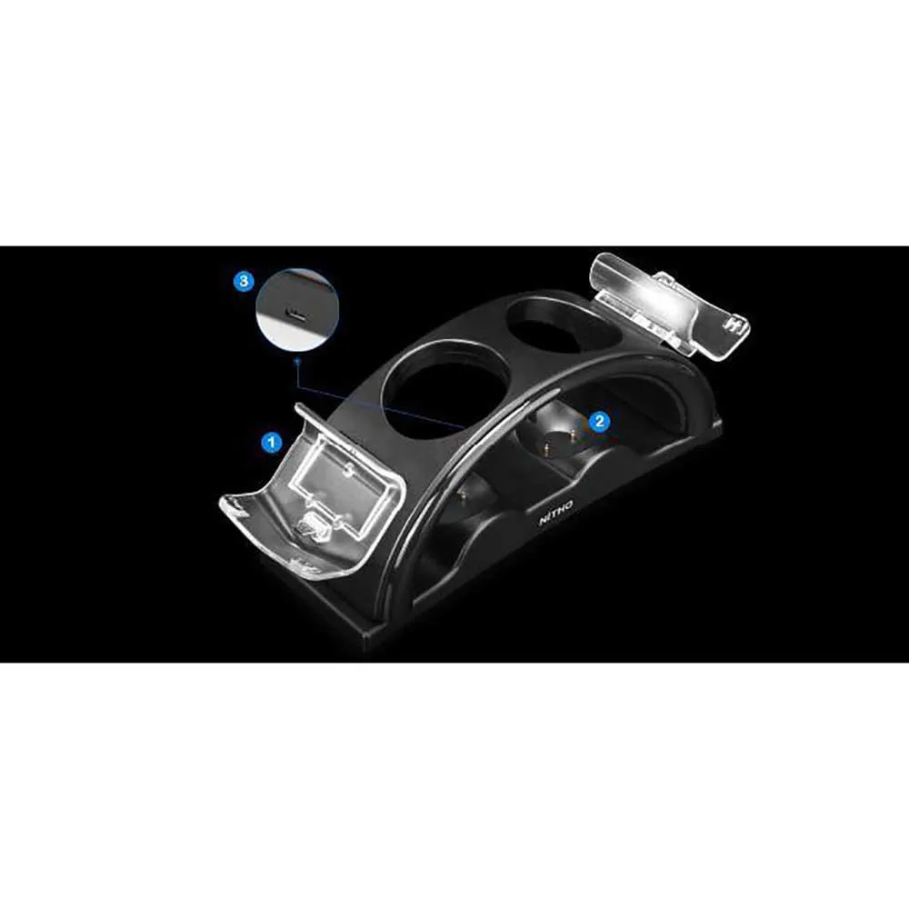 Designet for å perfekt komplementere konsollen din, tilbyr Arch ladestativ et enkelt, sentralisert knutepunkt for dine essensielle periferiutstyr. Dens intelligente design lader ikke bare opptil fire kontrollere samtidig, men fungerer også som et elegant vertikalt stativ, som forvandler ditt rotete spillområde til et ryddig, organisert og imponerende oppsett. Ikke mer leting etter kontrollere eller håndtering av lavt batteri-advarsler midt i en avgjørende misjon eller en intens flerspillerkamp. Med NITHO Arch kan du ganske enkelt slippe kontrollerne dine ned i de angitte sporene etter å ha spilt, og de vil være fulladet og vente på ditt neste eventyr. Dette er det uunnværlige tilbehøret for alle som verdsetter bekvemmelighet, organisering og uavbrutt spilling.