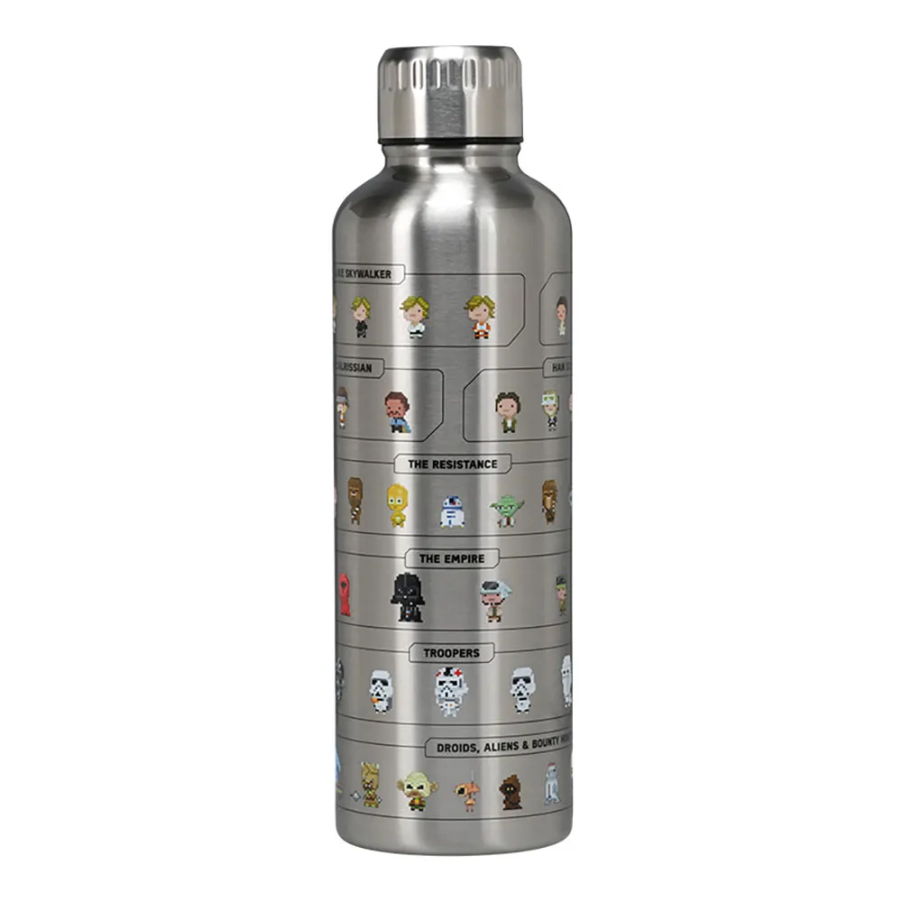 Den fremtredende egenskapen ved denne offisielt lisensierte Star Wars-flasken er dens unike 64-bits pikselerte design. Den hyller videospillenes gullalder, og gjengir dine favorittkarakterer og kjøretøy i en sjarmerende, blokkete kunststil. Se på en dynamisk collage med den truende Darth Vader, lojale Stormtroopers, den legendariske Millennium Falcon, en smidig X-Wing og en Imperial TIE Fighter, alt vekket til live i levende, retro grafikk. Dette særegne utseendet gjør den til et umiddelbart samleobjekt og en samtalestarter uansett hvor du går.