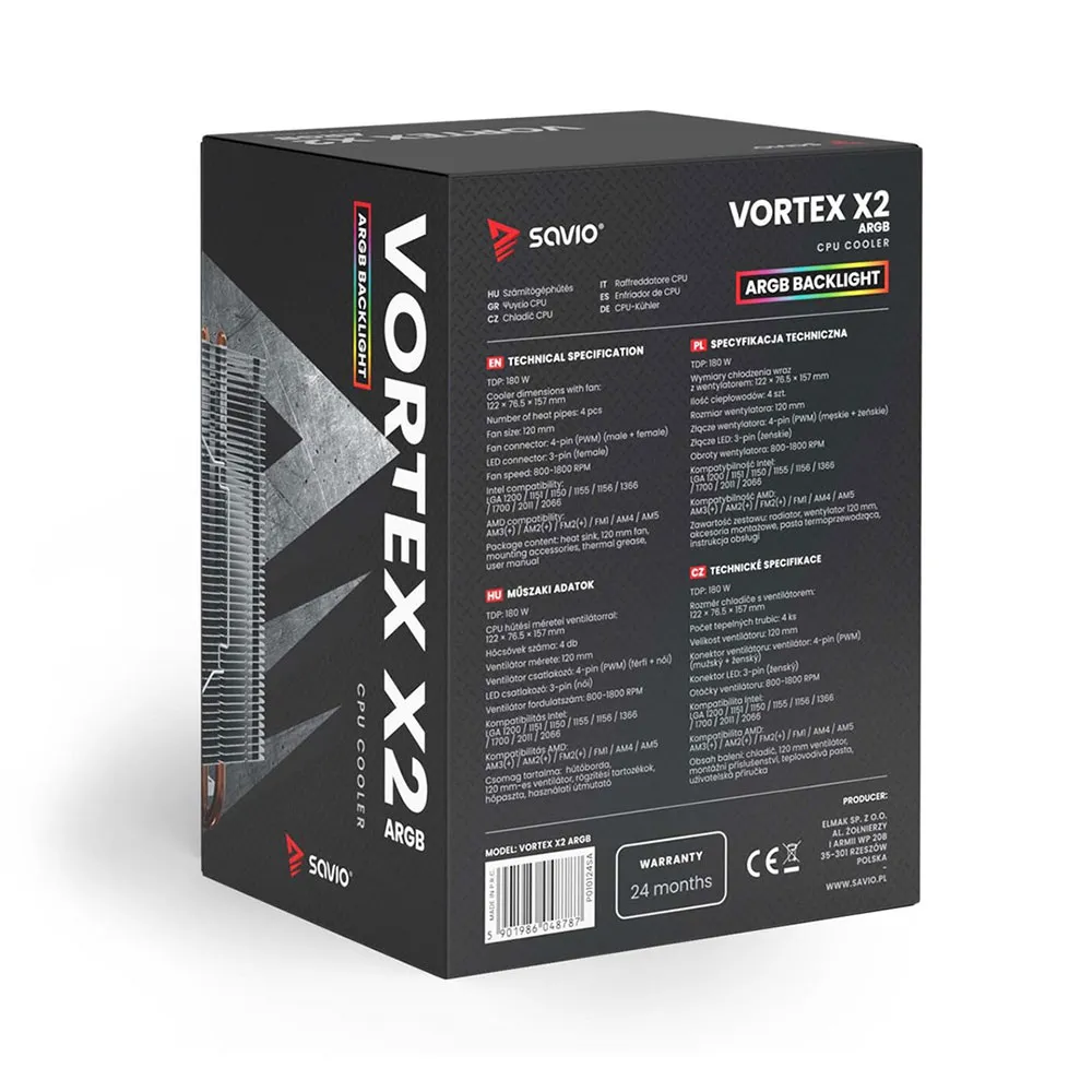 Produktbeskrivelse av Savio Vortex x2 ARGB CPU-vifte