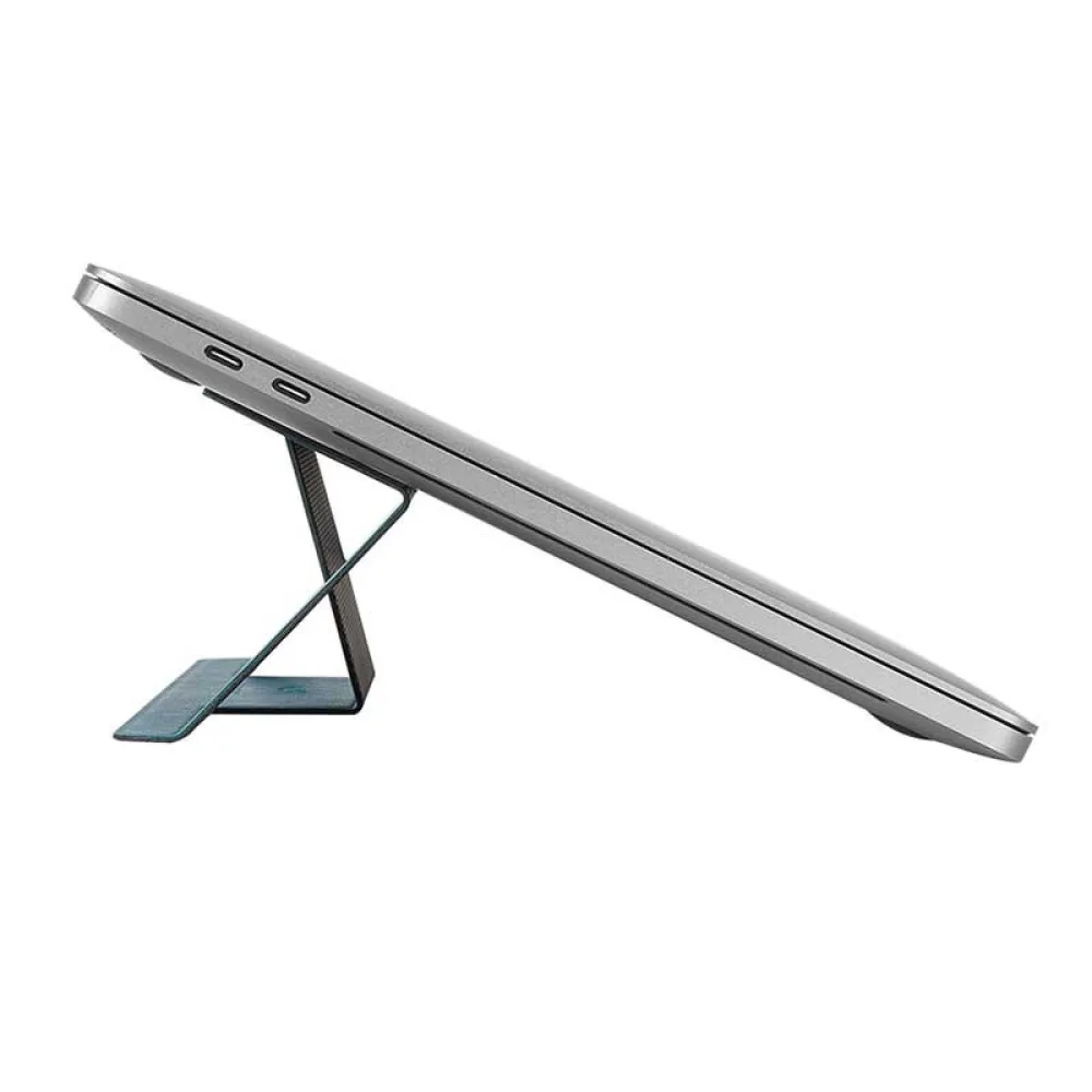 MOFT x simorr selvklebende laptopstativ 3330 er et stativ som er tynt som en mynt, ingen plass tatt, ingen belastning lagt på når du er på farten. Tar sekunder å bruke når det er nødvendig, slik at alle kan jobbe komfortabelt hvor som helst. Den kommer inn i 25°, den ergonomiske designen gir en naturlig vinkel for menneskekroppen ved å heve skjermen på den bærbare datamaskinen 3 tommer høyere. Den er konstruert med PU- og glassfibermaterialer, noe som gjør den lett, men likevel solid for å støtte bærbare datamaskiner på opptil 17 tommer, vekt opptil 18 pund. Det avtagbare limet er ment å sitte fast og løsne fra den bærbare datamaskinen uten å etterlate rester eller riper på overflaten. Gjenfesting kommer med samme effektivitet.