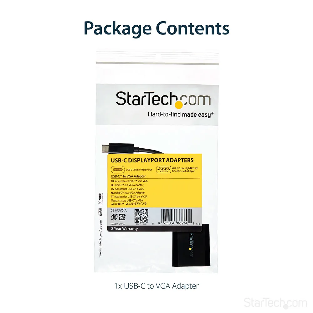 Produktbeskrivelse av Startech -Svart USB-C til VGA-adapter