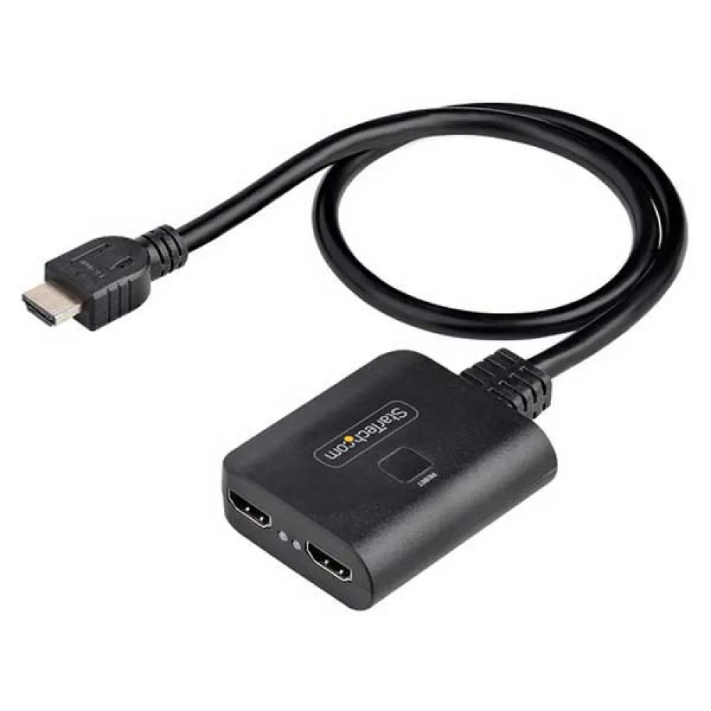Send et 4k 60hz HDMI-signal til to separate skjermer samtidig, drevet av en USB-port i nærheten. Denne 2-porters HDMI-splitteren viser det samme bildet fra en HDMI-videokilde til to HDMI-skjermer, med støtte for Uhd 4k-oppløsninger, Hdr (High Dynamic Range) , HDCP-innhold og 7.1-kanals lyd.4k 60hz-oppløsning denne 2-veis HDMI-splitteren støtter opptil 4k 60hz oppløsning og 4:4:4 Chroma Subsampling. Vis 4k-innhold på begge 4k-skjermene dine eller nedskaler oppløsningen til 1080p for å støtte skjermer med forskjellige oppløsninger, takket være den innebygde skaleren. Ideell for miljøer som inneholder skjermer med blandede oppløsninger. Usb-drevet splitteren inkluderer en 31-tommers (78 cm) USB Micro-B til Type-A-strømkabel og USB-vegglader. Hvis et uttak ikke er tilgjengelig eller innen rekkevidde, kan USB-strømkabelen kobles til en 5v 1a USB Type-A-port. Robuste installasjonsalternativer, denne HDMI-splitteren støtter aktive HDMI-kabler og HDMI-forlengere (selges separat), og gjør det lettere å installere på avstand fra Skjermene (EG, i et eksternt AV-komponentskap). Tilbakestill-knappen muliggjør problemfri Hot Plug Edid-deteksjon, uten behov for å koble fra kabler.Splitteren har 8kv luft- og 6kv kontaktelektrostatisk utladningsbeskyttelse (Esd), egnet for installasjon i en rekke miljøer. Dette produktet er støttet i 2 år, inkludert gratis levetid 24/5 flerspråklig teknisk assistanse. Startech.Com-fordelen