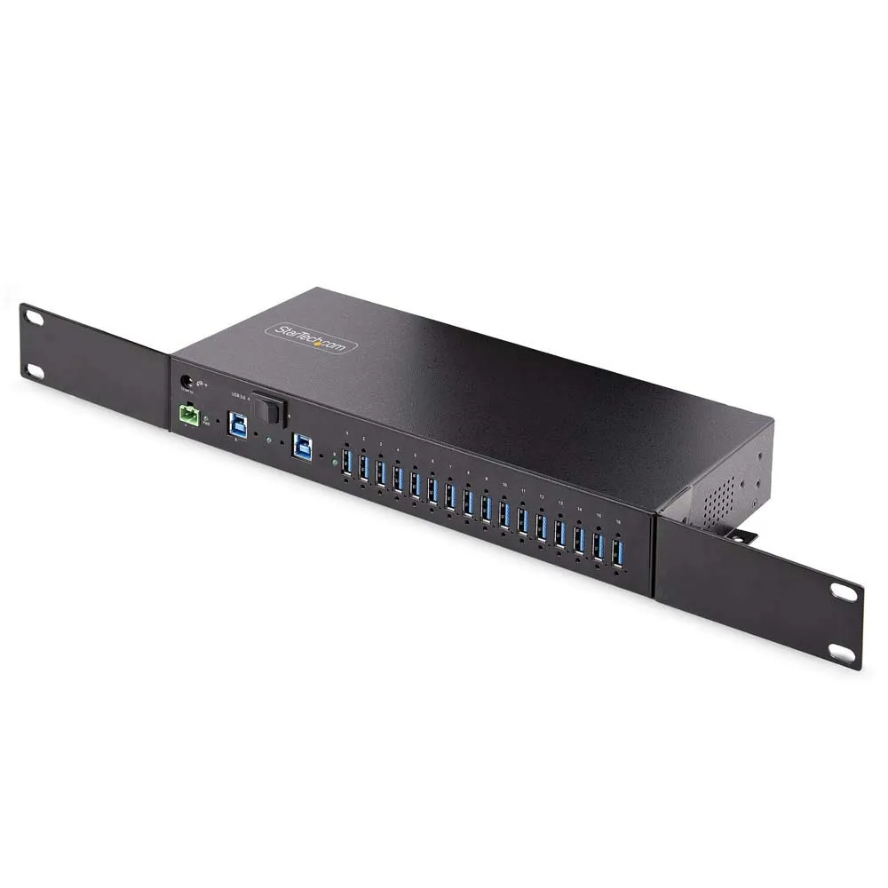 - 16-porters industriell USB-hub: Metallhus for holdbarhet - ESD-beskyttelse på nivå 4 (15 kV luft/8 kV kontakt) - 16 USB-A-porter - 5 Gbps delt - 3 m vertskabel - USB-hendelsesovervåkingsverktøy (tilgjengelig for nedlasting)