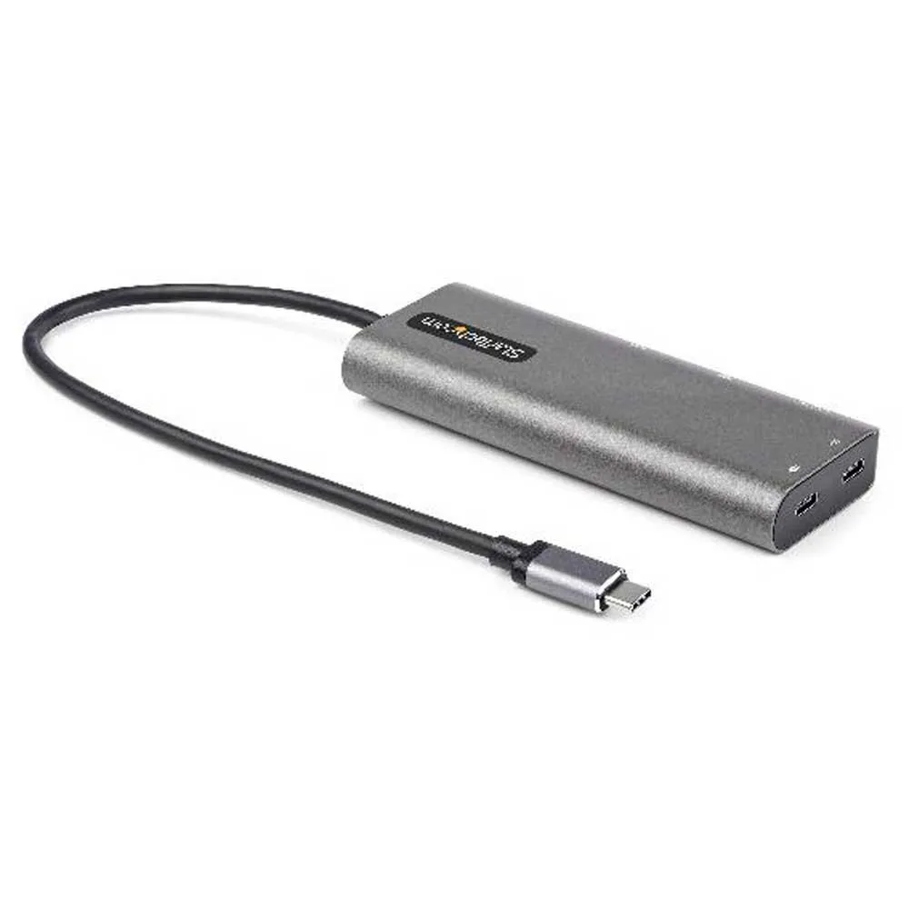 Denne USB C multiport-adapteren med DP 1.4 Alt-modus som støtter 4K 60Hz HDMI® og mini DisplayPort gjør din MacBook Pro, Dell XPS eller andre USB C™ bærbare datamaskiner eller nettbrett til en arbeidsstasjon, uansett hvor du er. USB Type C multiport-adapteren gir 4K HDMI- eller mDP-videoutgang, tre USB 3.2 Gen 2 Type A-porter (10 Gbps) inkludert en BC 1.2-ladeport; og én USB C-port (10 Gbps), alt gjennom én tilkobling til den bærbare datamaskinens USB C- eller Thunderbolt 3™-port. I tillegg tilbyr den avansert lading gjennom USB Power Delivery 3.0 og en ekstra lang festet 12-tommers (30 cm) vertskabel for utvidet rekkevidde for å tilby mer oppsettfleksibilitet.