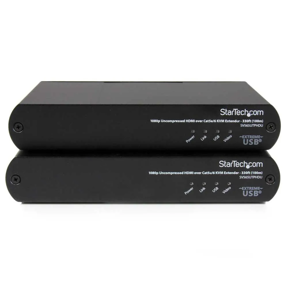 SV565UTPHDU USB HDMI® KVM-forlenger lar deg kontrollere en PC fra opptil 100 meter unna over en enkelt Cat 5e- eller Cat 6-kabeltilkobling, med ukomprimert 1080p HDMI-video og tilgang til opptil 3 tilkoblede USB-enheter.