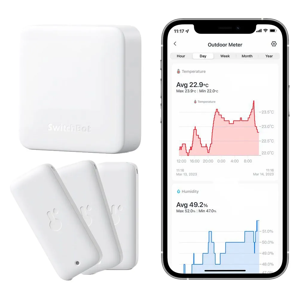 Nyt opptil 68 dager med innebygd datalagring og opptil 2 år med datalagring i appen (ubegrenset skylagring når SwitchBot Hub er lagt til).