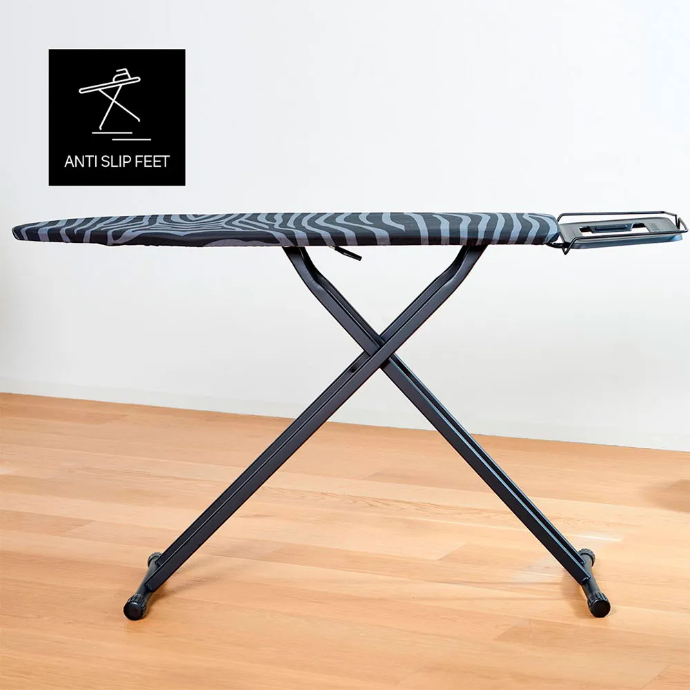 Dette robuste og stabile strykebrettet har en 0.8 mm tykk stålramme, egnet for dampstasjoner opp til 25 cm. Det 100 % bomullsdekket og stålnettet sikrer bedre varmefordeling. Med en justerbar høyde på opptil 93 cm, en overflate på 41x125 cm og en kompakt, sammenleggbar design, gir det komfort, holdbarhet og enkel oppbevaring.