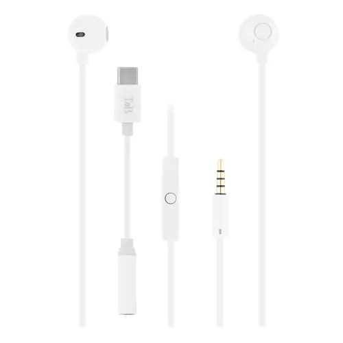 Kompatible med alle musikkspillere (smarttelefon, MP3, MP4 eller til og med iPod), har disse hodetelefonene fra SWEET-kolleksjonen et elegant design med sin matte hvite farge. Veldig komfortable og behagelige å ha på seg, vil de bli ditt essensielle tilbehør for å lytte til musikken din hver dag. Designet for optimal bruk, unngår den flate kabelen floker slik at du kan nyte musikken din umiddelbart. Disse SWEET-hodetelefonene er utstyrt med en universell mikrofon, slik at du kan ta en samtale direkte fra hodetelefonene, uten å måtte håndtere smarttelefonen din. Den 3.5 mm hunn-jack til USB Type-C-adapteren som følger med disse hodetelefonene, lar deg lytte til favorittspillelisten din på hvilken som helst enhet, inkludert din nyeste generasjons smarttelefon (unntatt Apple).