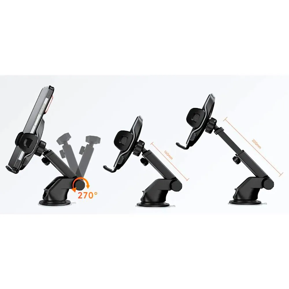 Bruk: Egnet for biler eller skrivebord. Teleskoparm: 12 til 270 graders vinkeljustering / justerbar lengde fra 14 cm til 20 cm.