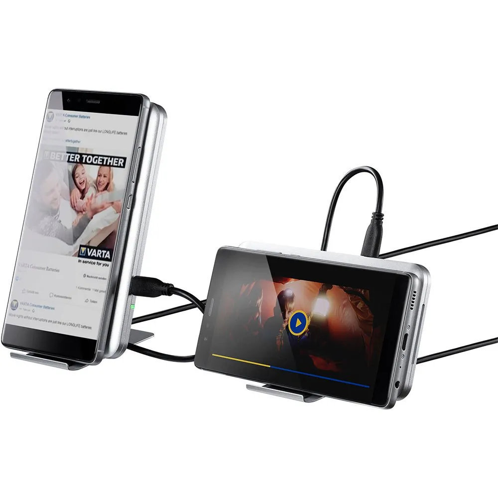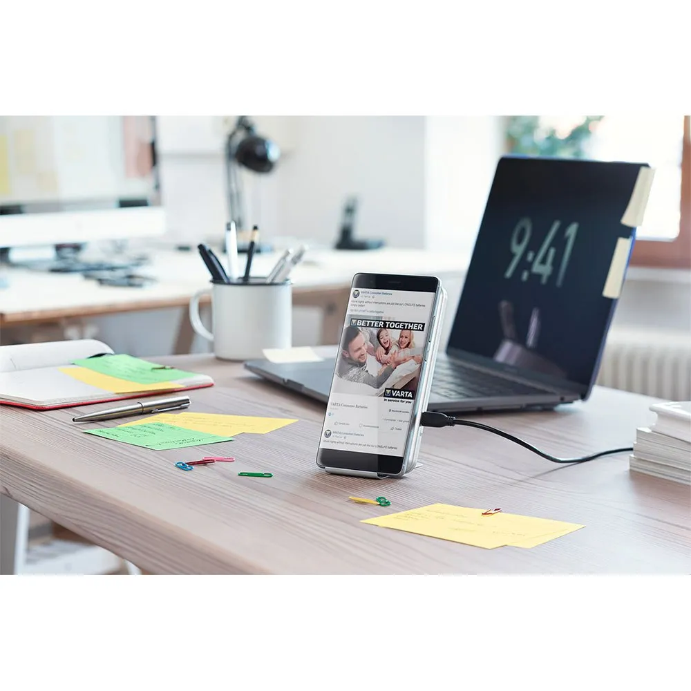 Den nye Varta raske trådløse laderen: Med Dual Coil-teknologi for å lade 10w mobiltelefoner horisontalt eller vertikalt.