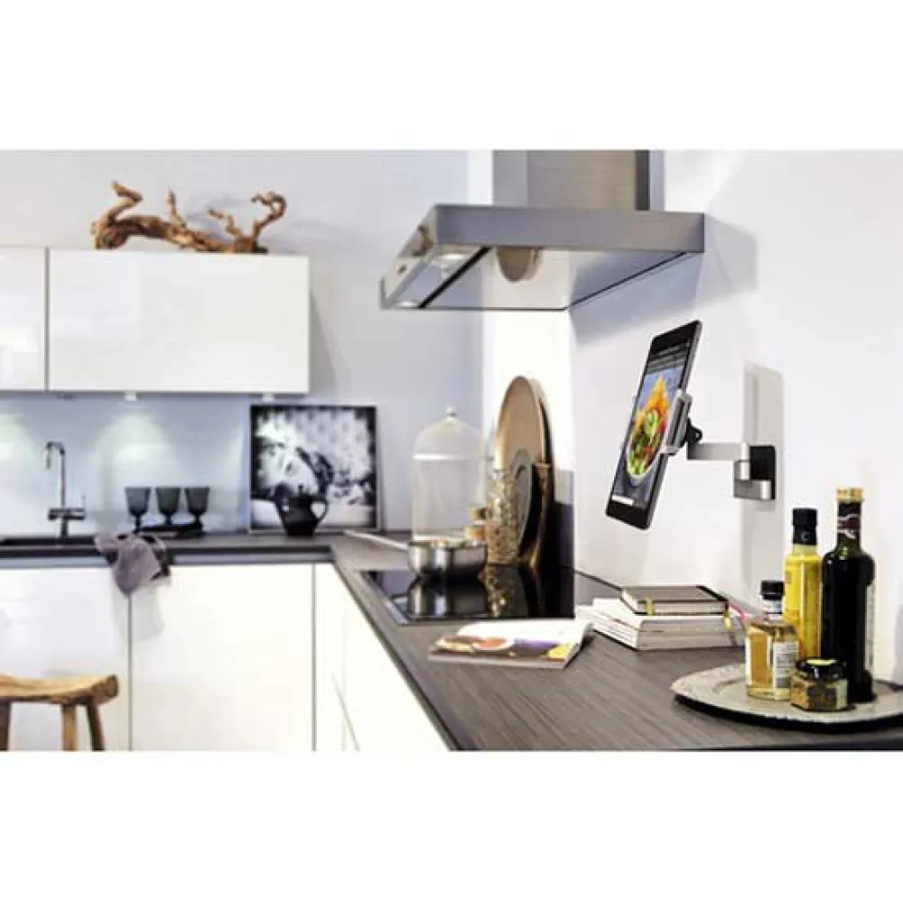 Nyt favorittinnholdet og -applikasjonene dine med enestående letthet. Følg en oppskrift mens du lager mat uten å bekymre deg for søl på skjermen, bruk nettbrettet som en ekstra skjerm for økt produktivitet ved skrivebordet, eller se en veiledning i garasjen mens du holder hendene fri for oppgaven. Den elegante designen, laget av høykvalitets aluminium, sikrer ikke bare robust stabilitet, men utfyller også ethvert moderne interiør. Dette systemet er bygget for å gi sikker støtte for din verdifulle enhet, og gir deg full trygghet.