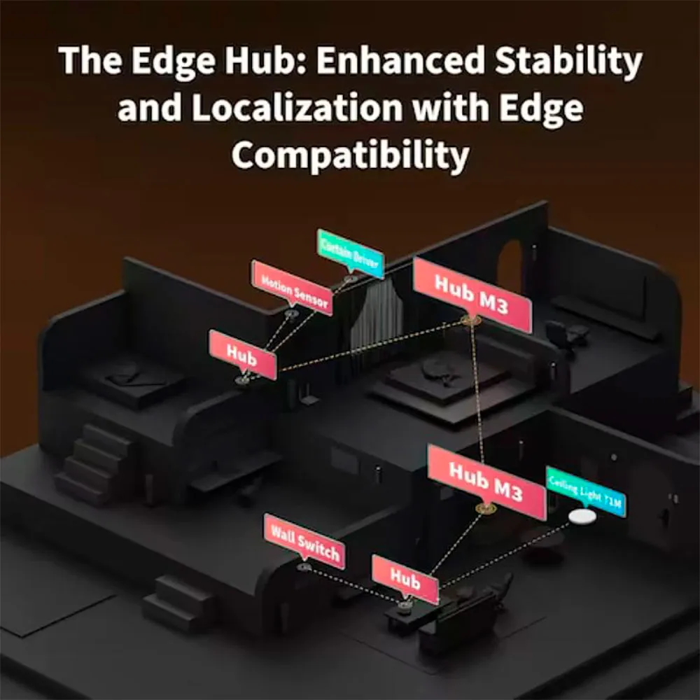 HUB M3 er et produkt som er kompatibelt med Thread og Matter-økosystemene, slik at du kan automatisere hjemmets smarte enheter uavhengig av produsent og bruke stemmeassistenter. Dermed vil du ha en enhetlig intelligent hjemmeopplevelse, konfigurere alle enhetene dine eksternt og til og med etablere scener og rutiner.
