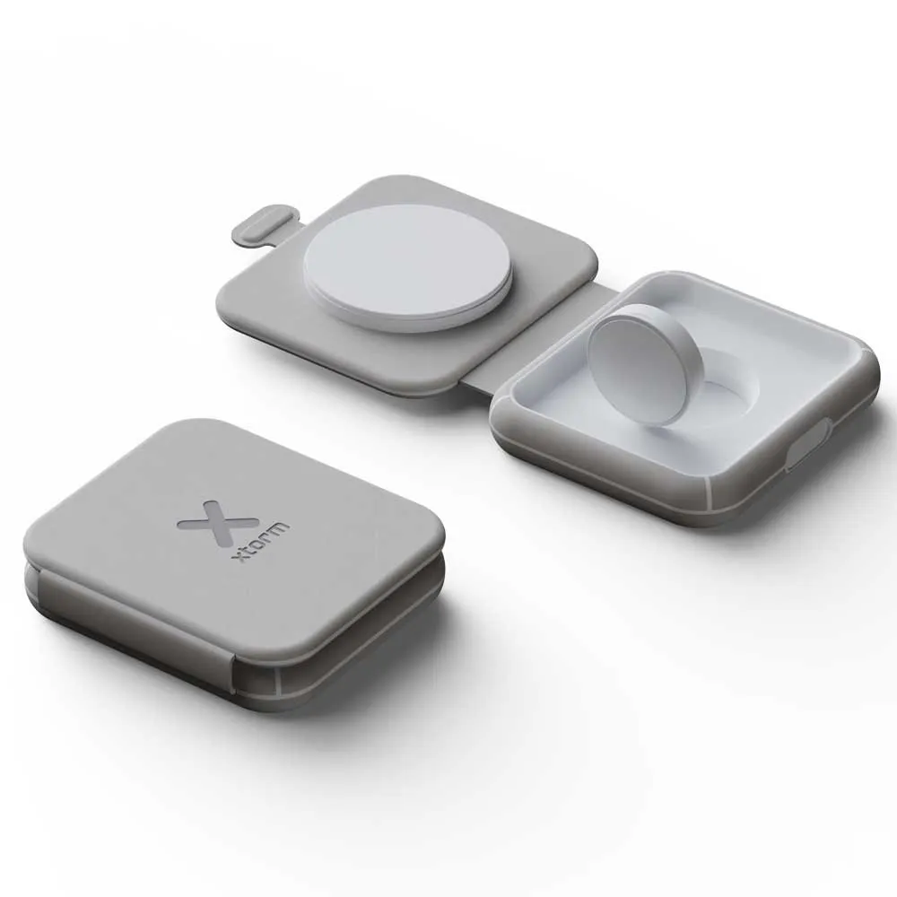 Streamline your charging experience, whether at home or across the globe, with the XTORM 2 in 1 Foldable Wireless Travel Charger. Engineered for the modern traveler, this device eliminates the clutter of multiple cables and adapters by offering a single, elegant solution to power your essential devices. Its innovative, compact design and powerful performance make it the perfect companion for your smartphone and wireless earbuds.