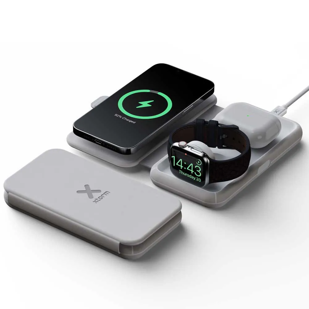 Xtorm - Sammenleggbar trådløs reiselader 3-i-1 - 15W.