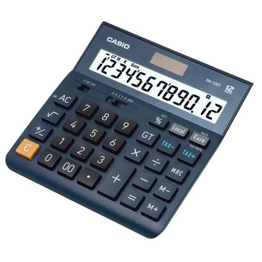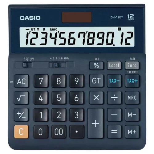 Kalkulator CASIO DH-12ET to eleganckie i funkcjonalne urządzenie, które jest idealne dla studentów, profesjonalistów i każdego, kto potrzebuje szybkich i łatwych obliczeń. Ten czarny kalkulator jest kompaktowy i lekki, dzięki czemu idealnie nadaje się do użytku w podróży. Posiada duży, czytelny wyświetlacz i szereg podstawowych funkcji, takich jak dodawanie, odejmowanie, mnożenie i dzielenie.