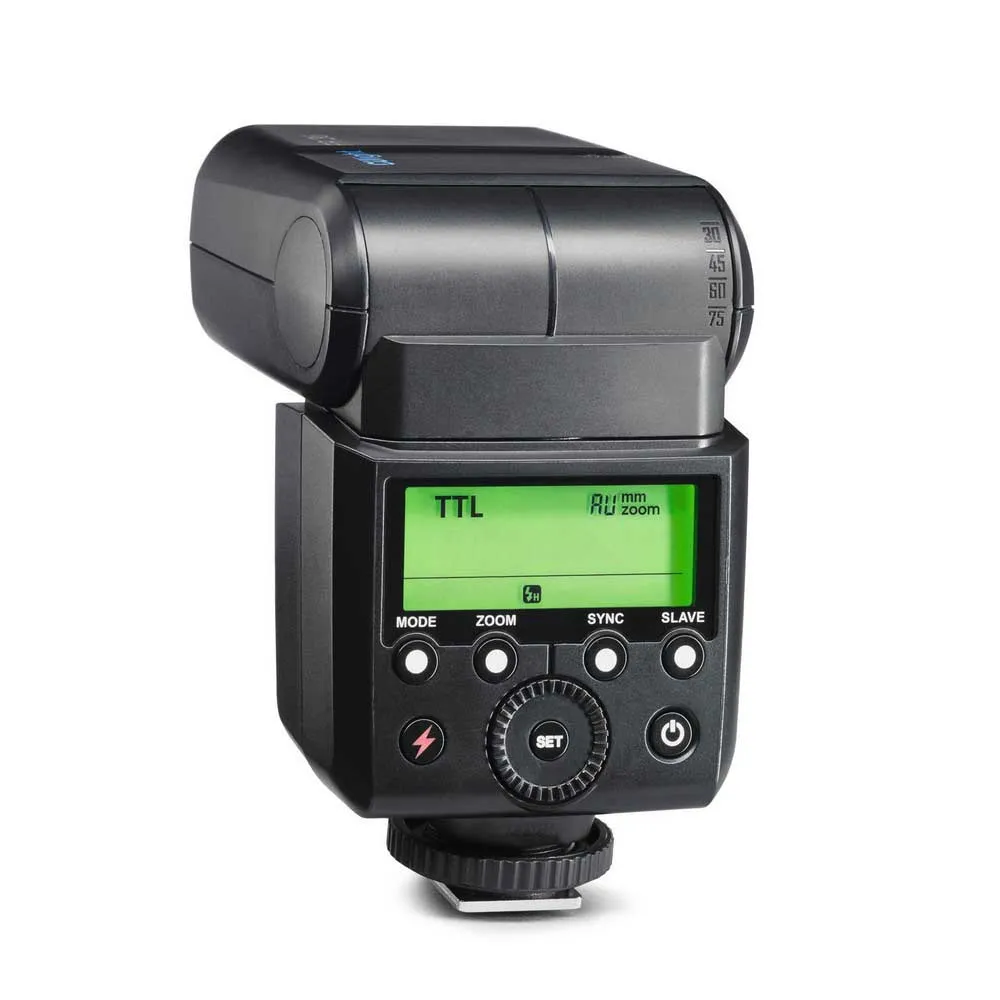 CULLMANN FR 36N jest wyposażona w inteligentne funkcje, które usprawniają pracę. Zmotoryzowana głowica zoom automatycznie dostosowuje wiązkę światła lampy błyskowej do ogniskowej obiektywu, obejmując wszechstronny zakres od 24 mm do 105 mm, zapewniając wydajne rozprowadzanie światła i optymalne pokrycie. Nawigacja po ustawieniach jest bezproblemowa dzięki przejrzystemu, podświetlanemu panelowi LCD z tyłu, który pozostaje doskonale widoczny w słabym oświetleniu. Ponadto mocna wiązka wspomagająca AF pomaga aparatowi uzyskać ostry, dokładny fokus w niemal całkowitej ciemności, w sytuacji, w której aparaty często mają problemy.