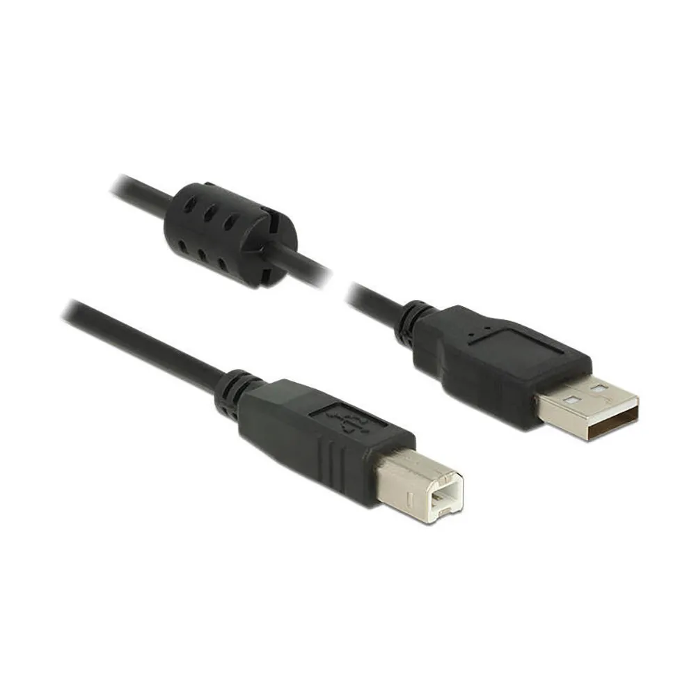 Delock 1 m, USB 2.0-A/USB 2.0-B. Długość kabla: 1 m, złącze 1: USB A, złącze 2: USB B, wersja USB: USB 2.0, rodzaj złącza: męski/męski, maksymalna szybkość przesyłania danych: 480 Mbit/s, pokrycie styków złącza: nikiel/złoto, kolor produktu: czarny, ekranowany magnetycznie.