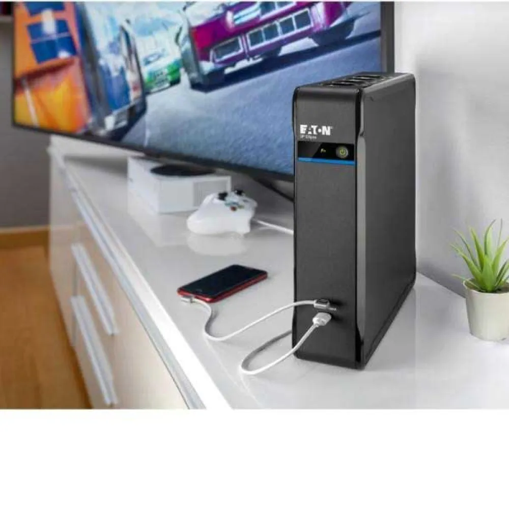 Jego elegancka, nowoczesna konstrukcja pozwala na wszechstronne umieszczenie, dyskretnie na biurku, pod nim, a nawet na ścianie, aby zaoszczędzić miejsce. Urządzenie zapewnia wiele gniazd do obsługi różnych urządzeń. Kilka gniazd oferuje zarówno zasilanie bateryjne, jak i ochronę przeciwprzepięciową, idealne dla krytycznego sprzętu, takiego jak komputer stacjonarny, stacja robocza lub sieciowa pamięć masowa (NAS). Dodatkowe gniazda zapewniają tylko ochronę przeciwprzepięciową, idealne dla mniej ważnych urządzeń peryferyjnych, takich jak drukarki i skanery, chroniąc je przed szkodliwymi skokami napięcia.