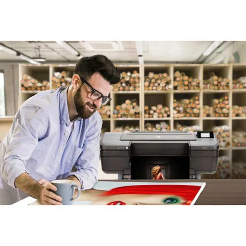 - Zaskocz najbardziej wymagających klientów płynnymi przejściami i ostrością szczegółów dzięki HP Pixel Control.Nie ma potrzeby używania tuszy światłoczułych z nowymi głowicami drukującymi wysokiej rozdzielczości z technologią Dual Drop.Osiągnij rozszerzoną gamę z tuszami HP Vivid Photo Inks i wbudowanym spektrofotometrem.[1]Uzyskaj lepszą jednorodność połysku, ulepszając swoją drukarkę, wyposażając ją w HP Gloss Enhancer.[2] SZYBKO- Pracuj bez opóźnień: