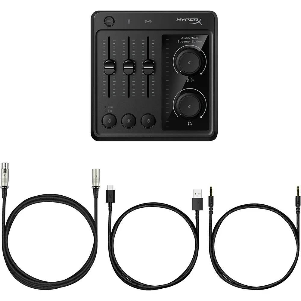 Mikser HyperX Audio Mixer jest przeznaczony dla twórców, którzy chcą z łatwością miksować do 3 źródeł dźwięku: wejście XLR, wejście mikrofonowe 3.5 mm i wejście liniowe stereo 3.5 mm.