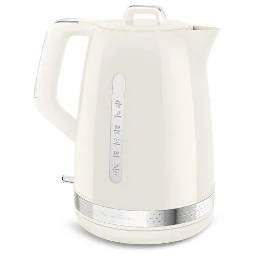 Konserwacja jest bezproblemowa dzięki ukrytej grzałce. Ten inteligentny projekt zapobiega bezpośredniemu kontaktowi grzałki z wodą, co drastycznie zmniejsza osadzanie się kamienia na elemencie grzewczym i sprawia, że płaskie, stalowe wnętrze jest niezwykle łatwe do wytarcia. Bezpieczeństwo jest również priorytetem, z funkcją automatycznego wyłączania, która wyłącza czajnik po zagotowaniu wody, zapewniając spokój ducha Wykończona w pięknym, ponadczasowym kolorze kości słoniowej, wytrzymała plastikowa obudowa czajnika Moulinex Subito Select dodaje klasycznej elegancji Twojemu blatowi. Jego smukłe linie i ergonomiczny design sprawiają, że jest to nie tylko praktyczne narzędzie, ale także stylowy dodatek do Twojego domu.