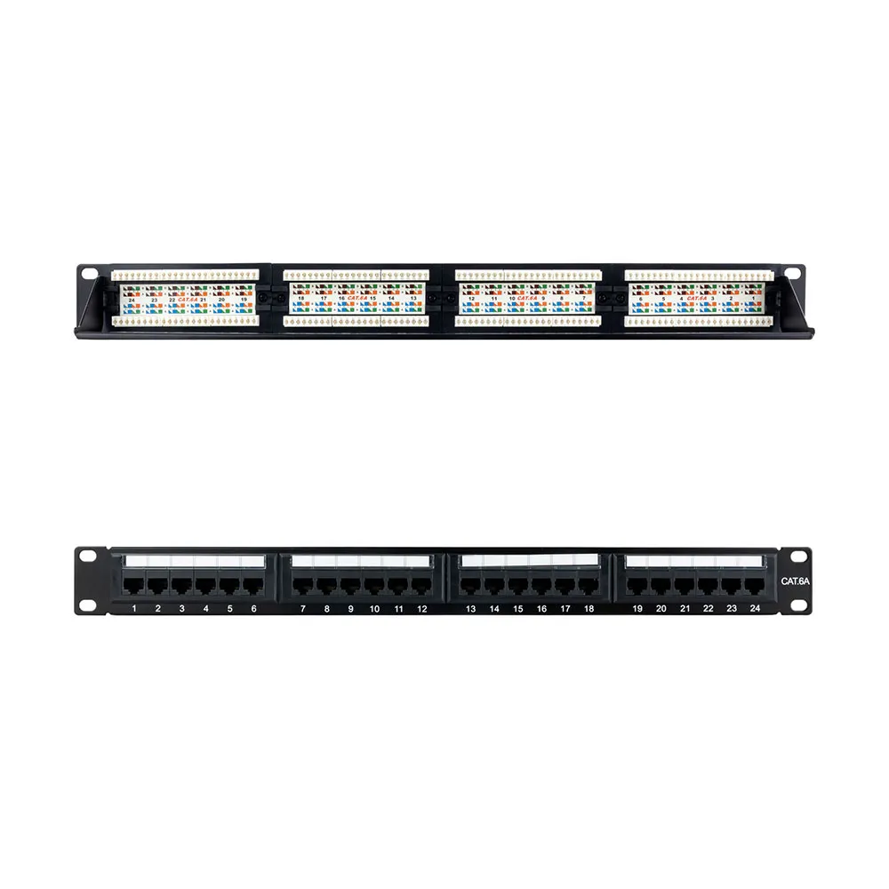 24-portowy panel krosowy dla połączeń RJ45 Cat.6A UTP.