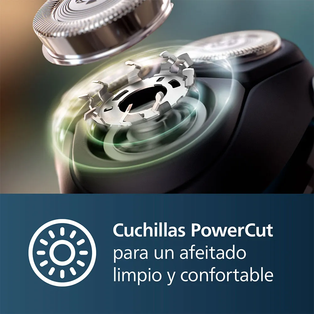 System golarki: rotacyjna, Kolor produktu: czarny, niebieski, Technologie systemu golenia: system ostrzy PowerCut.