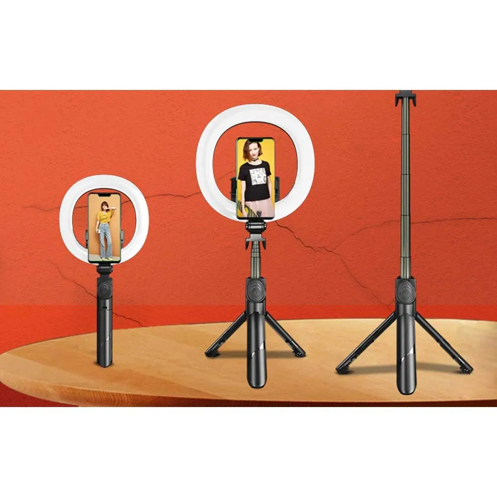 Statyw Puluz z pierścieniową lampą LED doskonale oświetli Twoją twarz podczas nagrywania filmów lub robienia zdjęć. Możesz również przekształcić statyw w kijek do selfie i wygodnie robić zdjęcia za pomocą pilota Bluetooth. Dzięki 3 trybom oświetlenia do wyboru z regulowaną jasnością, możesz łatwo dopasować światło idealnie do swoich wymagań. Urządzenie jest niezwykle lekkie, a dzięki składanej i przenośnej konstrukcji możesz zabrać je ze sobą wszędzie.