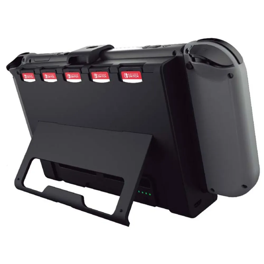 Uchwyt ładujący zapewniający dodatkową moc dla konsoli Nintendo Switch.