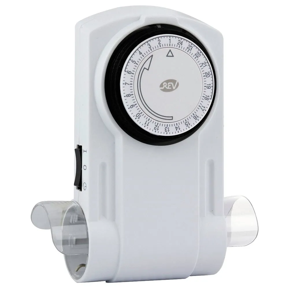 Instalacja jest bardzo prosta. Wystarczy podłączyć REV Timer Mechanical do standardowego gniazdka elektrycznego, a następnie podłączyć żądane urządzenie do timera. Nie są wymagane żadne przewody ani specjalne narzędzia, co czyni go szybkim i łatwym projektem DIY. Kompaktowa konstrukcja timera zapewnia, że nie będzie on zasłaniał innych gniazdek ani powodował nieestetycznego bałaganu. Jego neutralny kolor idealnie komponuje się z każdym wystrojem, dzięki czemu jest dyskretnym dodatkiem do Twojego domu lub miejsca pracy.
