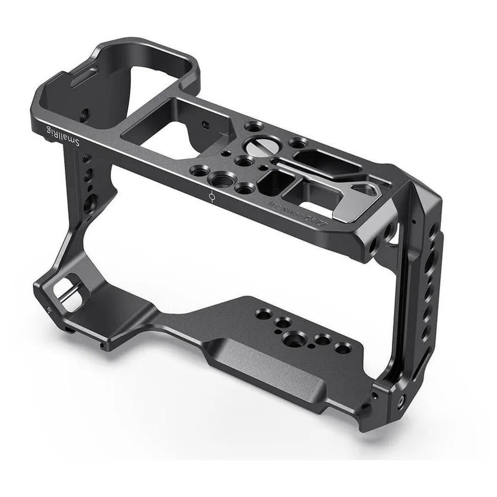 Klatka SmallRig do aparatu Nikon Nikon Z5/Z6/Z7 2243 jest dopasowaną klatką, która zapewnia pełną ochronę i opcje montażu aparatu Nikon Nikon Z5/Z6/Z7. Klatka jest mocowana na aparacie za pomocą dolnego gwintowanego otworu 1/4´´ 20 i posiada gwintowany otwór m2,5 po lewej stronie jako drugi punkt blokujący, aby zapobiec skręcaniu się kamery. Jednoczęściowa aluminiowa klatka ma wiele gwintowanych otworów 1/4 ´´ 20, 3/8´´ 16 i Arri 3/8´´ do mocowania akcesoriów. Dodatkowo posiada zimną stopkę na górze do mocowania mikrofonu, a szyna nato po lewej stronie pozwala na szybkie zwolnienie konfiguracji. Dno posiada wiele otworów gwintowanych 1/4´´ 20 i jeden 3/8´´ 16, które umożliwiają montaż płyt statywowych. Klatka ma dwa gwintowane otwory M4, które służą do montażu mocowania adaptera obiektywu FTZ 2244 w celu ochrony mocowania obiektywu. Opcjonalną płytkę Arca Baseplate 2092 można przymocować do spodu systemu 15 mm LWS, a także zacisk kablowy 1679 w celu ochrony portu HDMI.