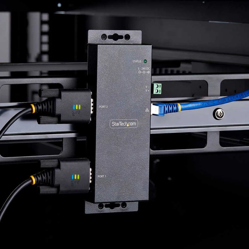 StarTech.com 2-Portowy Adapter Szeregowy do Ethernet, Serwer Urządzeń Szeregowych IP dla Zdalnych Urządzeń RS232, Montaż na Ścianie/Szynie DIN, Metalowa Obudowa, Konwerter RJ45 LAN na DB9 Szeregowy.