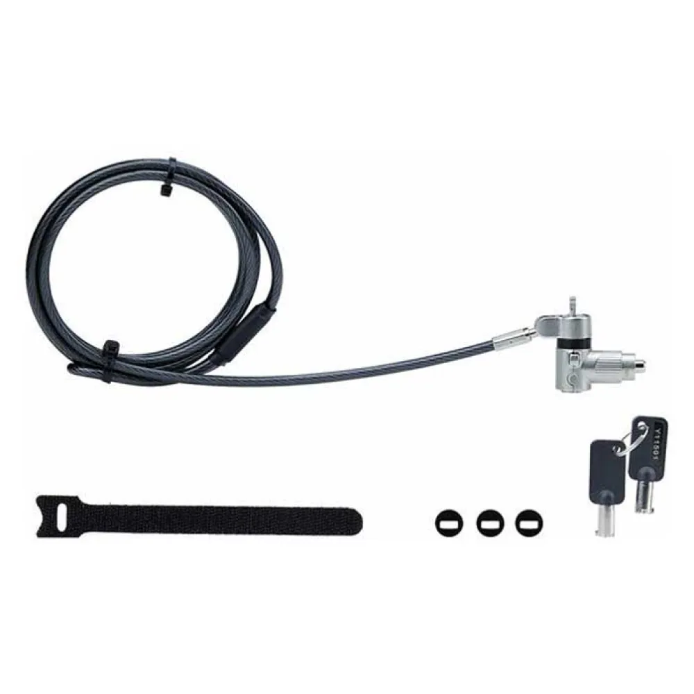 - Zamek na laptopa z kluczem: zestaw dwóch kluczy ze stopu cynku - Przycisk blokujący do szybkiego aktywowania blokady bezkluczykowej - Pokrętło selektora umożliwia dostosowanie końcówki blokującej do gniazda zabezpieczającego komputera