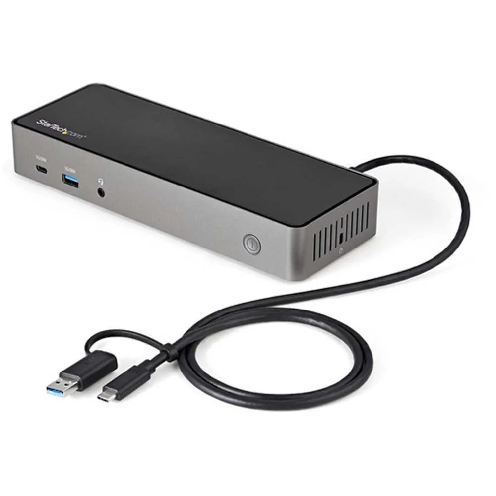 Ta stacja dokująca USB C Gen 2 10 Gb/s zmienia MacBooka Pro USB C® lub Thunderbolt™ 3, laptopa z systemem Windows i Chromebooka w potężną stację roboczą. Stacja dokująca USB 3.2 Gen 2 Type C oferuje wszystko, czego potrzebujesz, od potrójnych wyjść wideo HDMI lub DisplayPort do 4K 60 Hz, przez porty USB C i USB A do odbioru danych 10 Gb/s, aż po 85 W Power Delivery. Starsze laptopy USB A są obsługiwane za pomocą uniwersalnego kabla hybrydowego USB C/USB A dołączonego do zestawu.