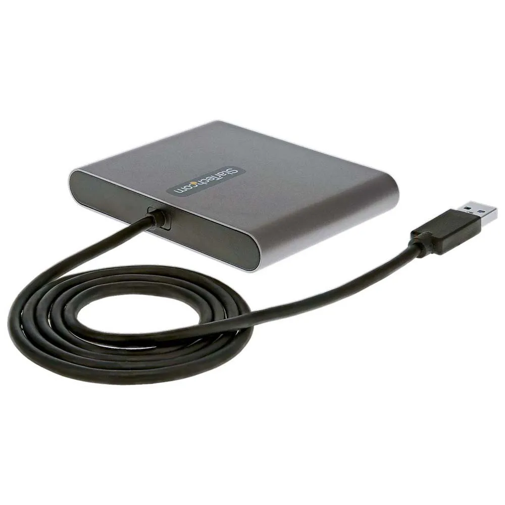 Wykorzystując interfejs USB 3.0, ten adapter-dongle z obsługą czterech monitorów zapewnia rozdzielczości wysokiej rozdzielczości do 1920x1080 (1080p) na wszystkich czterech portach.