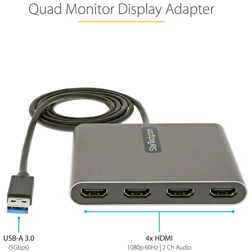 Adapter StarTech.com USB 3.0 do Quad HDMI, konwerter USB na 4x monitor HDMI dla systemu Windows (brak obsługi macOS/ChromeOS/Linux) - TAA.