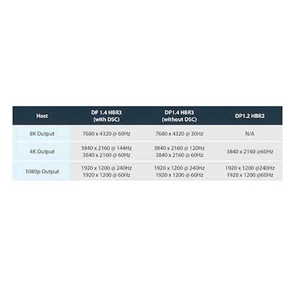 Dzięki temu adapterowi możesz również osiągnąć rozdzielczość wyjściową do 7680x4320 przy 60 Hz (z laptopem obsługującym DP 1.4 i DSC) lub 7680x4320 przy 30 Hz (bez DSC), co jest idealne do wykonywania zadań o wysokiej rozdzielczości, takich jak oglądanie wideo 8K. Ponadto adapter DP 1.4 jest wstecznie kompatybilny z wyświetlaczami 1080p, co czyni go doskonałym akcesorium do zastosowań domowych, biurowych lub innych przestrzeni roboczych, a jednocześnie sprawdza się w przyszłości pod kątem implementacji 8K.