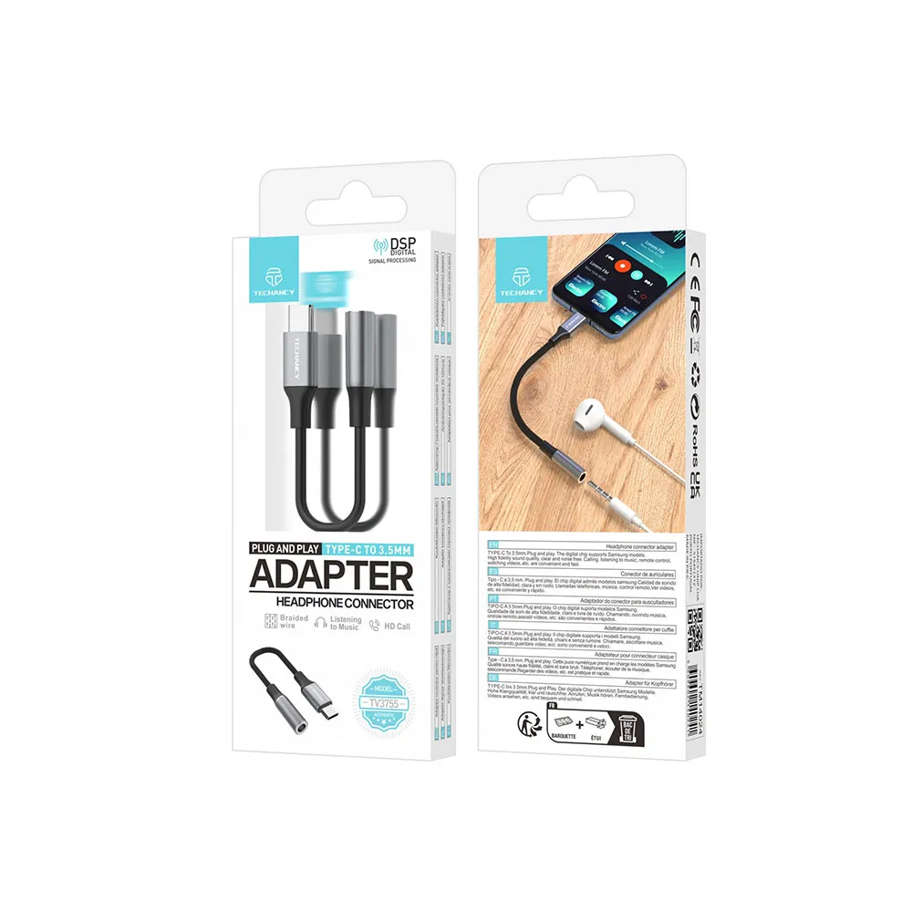 Opis produktu: Adapter słuchawkowy Techancy TV375. Typ C na 3.5 mm.