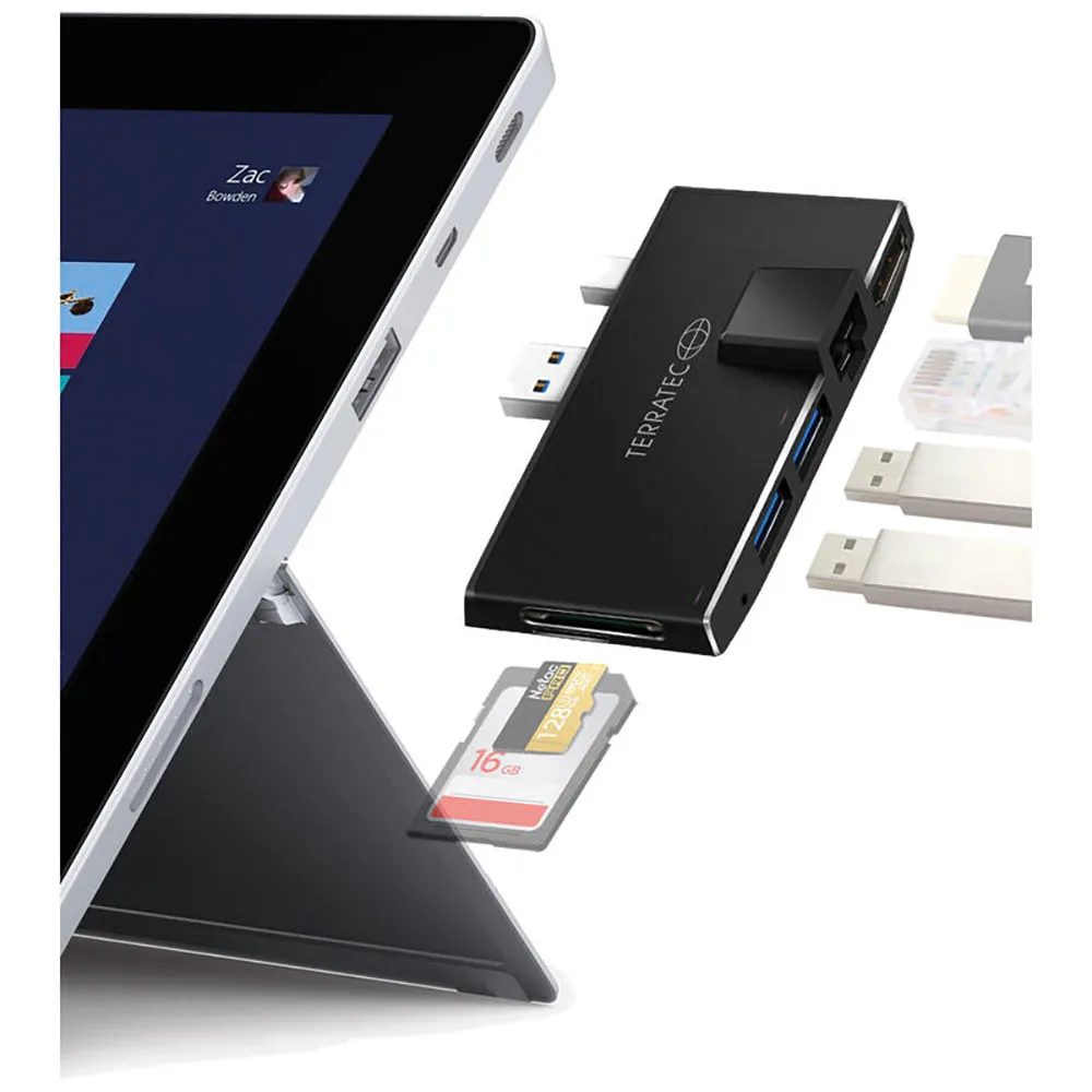 Terratec connect pro2, przewodowy, usb 3.2 gen 1 (3.1 gen 1) typu A, 1000 Mbit/s, czarny, mmc, microsd (transflash), sd, 4k ultra hd.