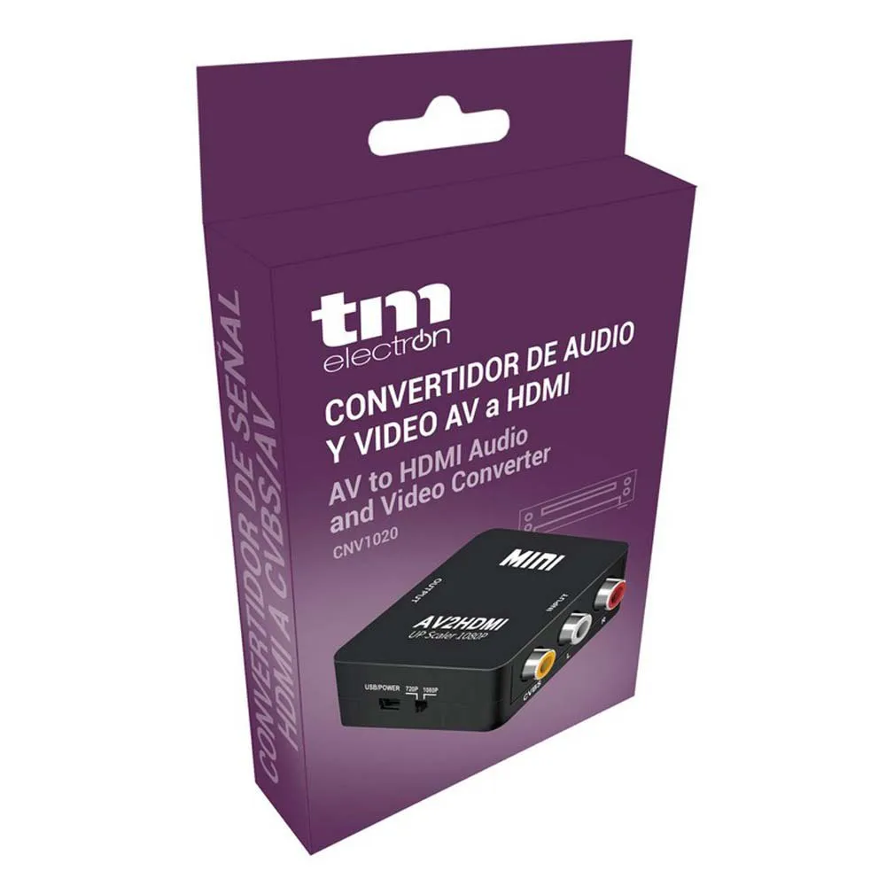 TM Electron konwerter audio i wideo AV na HDMI. Konwerter sygnału AV na HDMI może konwertować sygnał wideo AV (CVBS) i sygnał audio stereo FL/FR na sygnał cyfrowy HDMI, dzięki czemu sygnał audio i wideo z DVD, kamery i innych urządzeń można konwertować na wyjście HDMI o wysokiej rozdzielczości. Łatwo podłączyć do telewizora LCD, monitora HD itp.