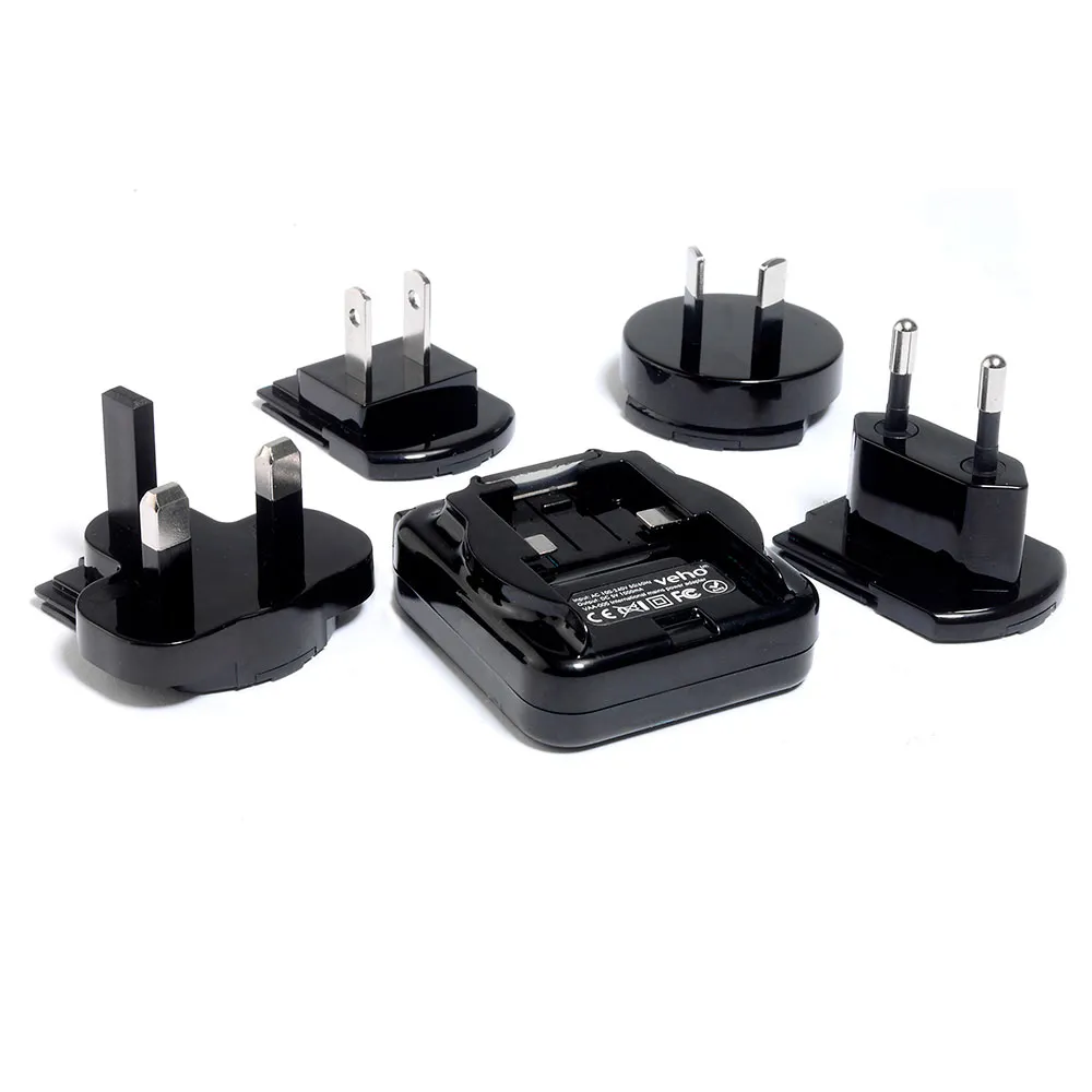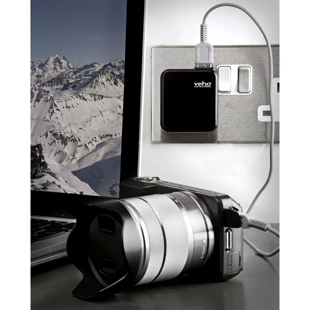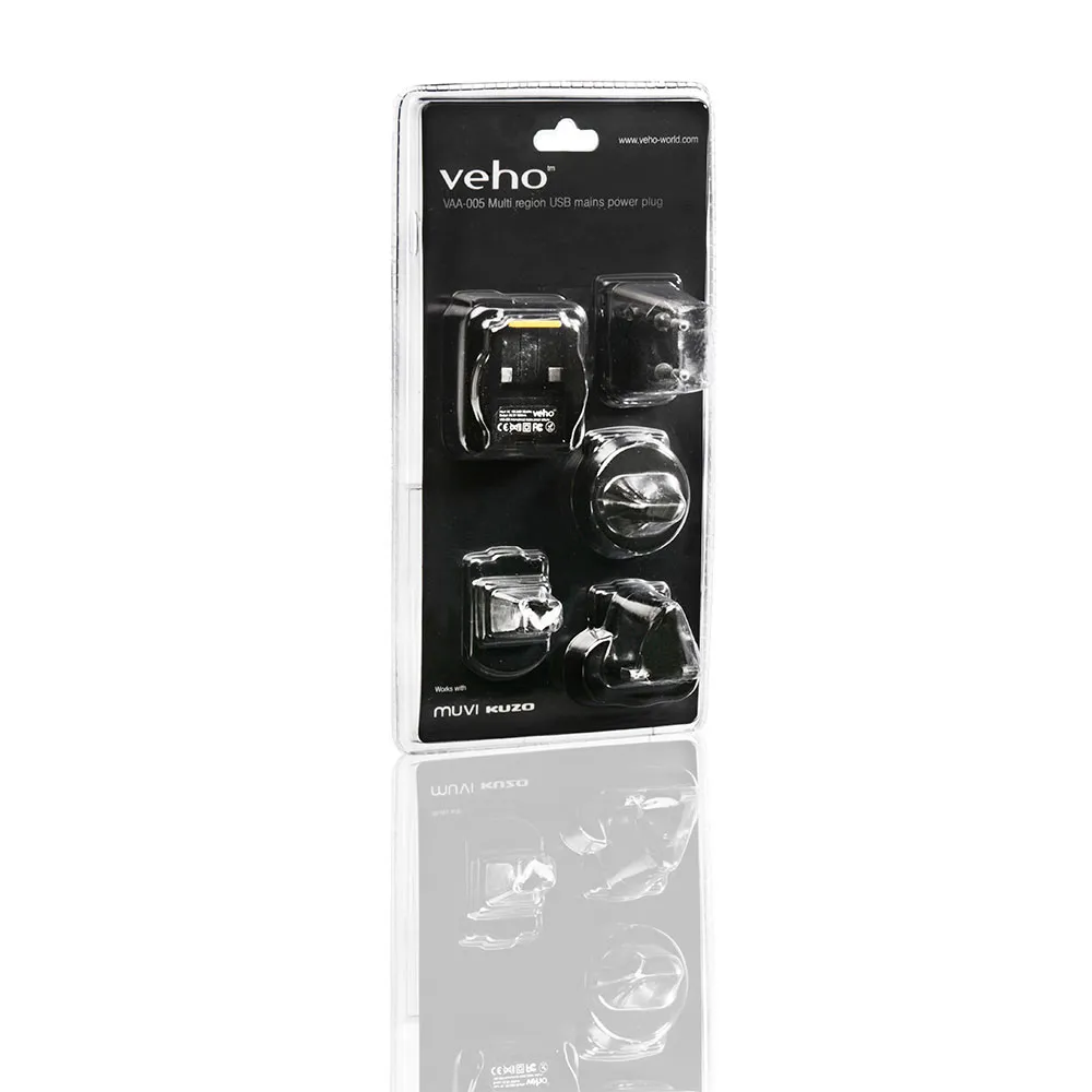 Gdziekolwiek jesteś na świecie, multiregionalny adapter USB Veho VAA 005 umożliwia ładowanie dowolnego urządzenia USB. Wymienne gniazda prądu przemiennego można szybko i łatwo włożyć i wyjąć z pozycji, dzięki czemu można z łatwością przełączać się między regionalnymi zasilaczami.
