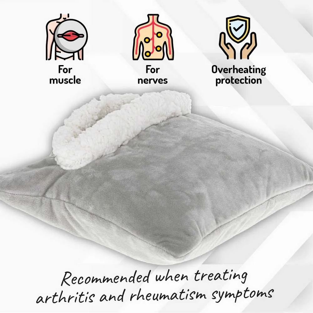 - A dor nas articulações, nervos ou músculos pode tornar o funcionamento diário desconfortável e até mesmo atividades simples quase impossíveis de realizar. Portanto, se você sofre de doenças musculoesqueléticas, reumatismo, neuralgia ou tem problemas com a circulação sanguínea, invista em um aquecedor de corpo. É uma maneira conveniente e simples de aliviar dores cansativas a qualquer hora do dia ou da noite, sem a necessidade de tomar analgésicos ou usar pomadas que irritam a pele. Nossa almofada também possui uma abertura confortável que facilita o aquecimento das mãos. Possui proteção contra superaquecimento, o que o torna seguro de usar. Outra vantagem é o curto tempo de aquecimento, o que significa que você sentirá um calor agradável e uniformemente distribuído quase imediatamente após ligá-lo. O controlador com visor facilita o controle do funcionamento do dispositivo.