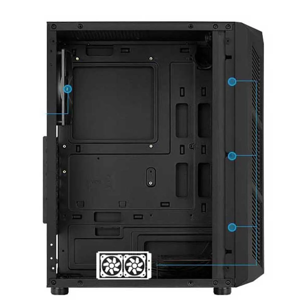 Suporta resfriamento de ar na parte frontal, superior e traseira do gabinete